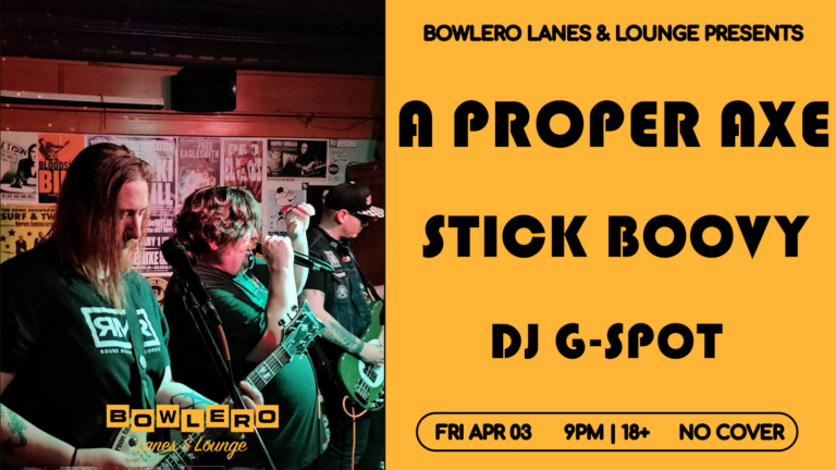 A Proper Axe is Metal music for people who feel that they don’t belong anywhere. Catch them live in the lounge wsg Stick Boovy!