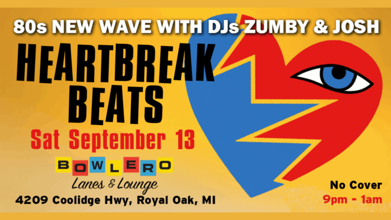 High-energy new wave. Moody alt, synth classics and haunted grooves. HEARTBREAK BEATS returns Saturday, September 13.